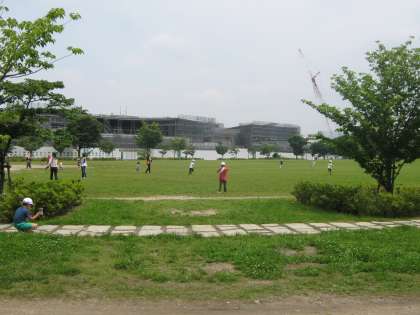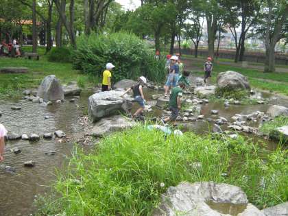 水からあがると,今度は芝生広場に遊びに行ったり草ずもうをしたり,子どもたちは遊びの天才ですね。