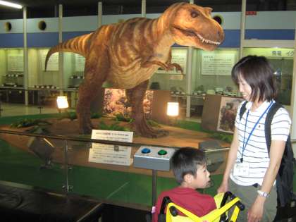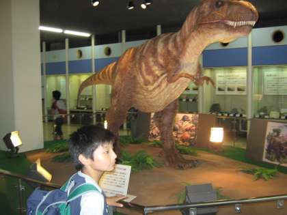 大きな大きなティラノサウルスにあいました。ボタンを押して、鳴き声を聞きました。