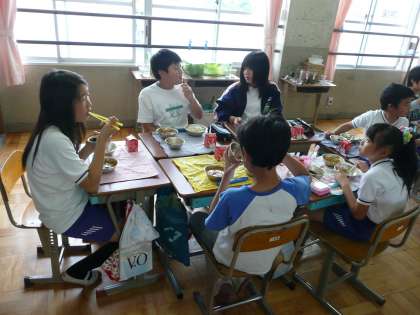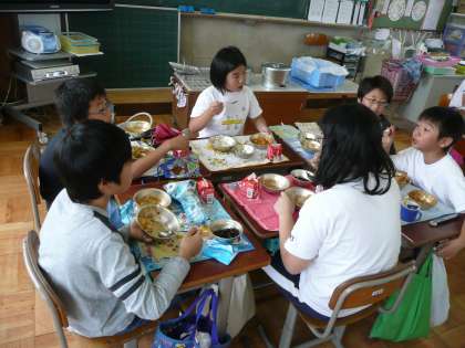 給食の時間も,その班で楽しく話しながら食べています。