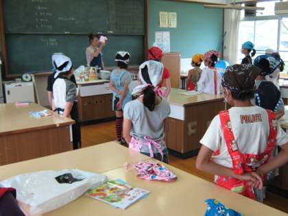 今日、楽しみにしていた調理実習がありました。はじめに、先生から注意事項をききました。