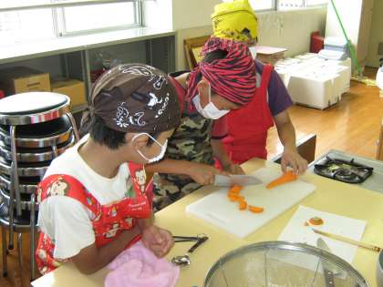 は、初めて包丁を使いました。緊張しました。にんじんの、固いこと固いこと。でもとてもおもしろかったです。