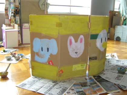 写真は、6年生の作品の家です。まだ、制作途中ですが、ドアが開くように