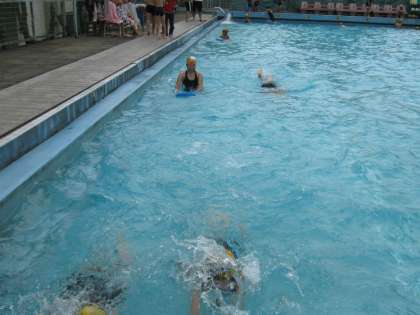 自分ができる泳ぎ方で25m,50mなど自分に合ったコースを選び練習しました。