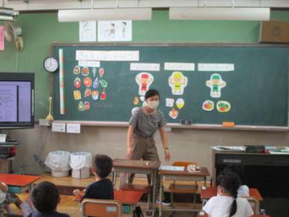 今日は,1年生の食の指導が栄養教諭よりありました。「きゅうしょくについてしろう」というめあてで学習を進めました。「はらぺこあおむし」の絵本のあおむしの成長を通して,自分の成長に大切な3つのパワーについて知り,好き嫌いなく食べようとする意欲をもつことができました。