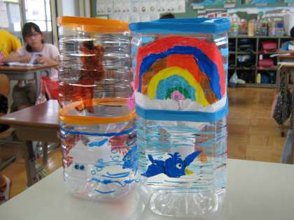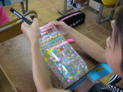 地域のお年寄りの方にプレゼントにする,植え木ばちを作っています。