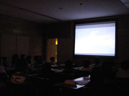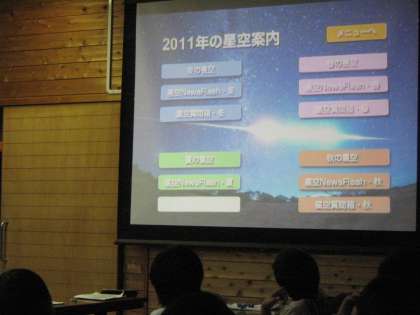 一日目の夜は天体観測の予定でしたが,残念ながら雨天のため室内で「夏の星座について」や「はやぶさ最後の光」のDVDを鑑賞しました。「夏の星座」では天の川や流れ星,惑星の見えるときなどを知ることができました。また,「はやぶさ最後の光」では,「感動した!」という声がたくさんあがりました。