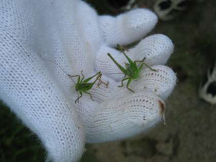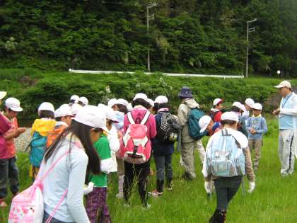 川の周辺では,バッタや鹿の足跡,きのこや野いちごなどたくさんの自然を見つけました。
