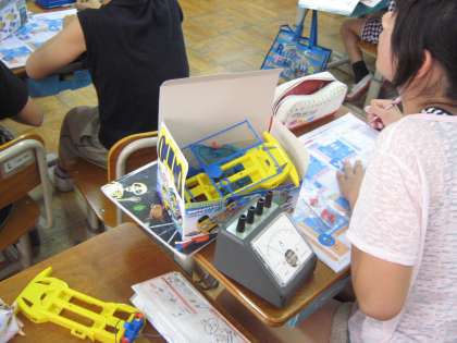 光電池の働きについて学習しています。どのようなときに光電池が電流を流すのかを考えながら実験しました。貴重な晴れの日なので,この機会を逃さずてきぱきと活動していました。