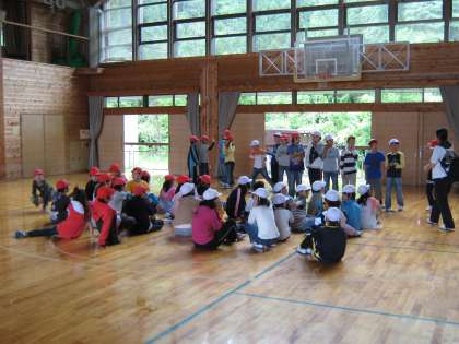 山の家のプレイホールで、1組対2組のドッジボール対決をしました。みんな大盛り上がりでした。