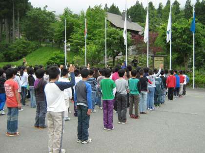 同じ日に入所した4校で、合同朝のつどいがありました。4校が集まると、すごい数でした。とても緊張しました。