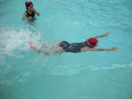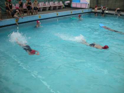 けのびは,しっかりプールの壁を蹴ってしっかり浮くと5メートルは浮きます。