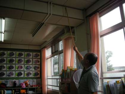 蜂が教室に入り驚いていた子どもたちです。でも校内の教員で昆虫博士と呼ばれている先生に見てもらったら,刺さない蜂でどろ蜂という蜂だそうです。運んできた巣を撤去しました。しかし,撤去されても次々にまた巣作りを続けるのであきれていた子どもたちです。