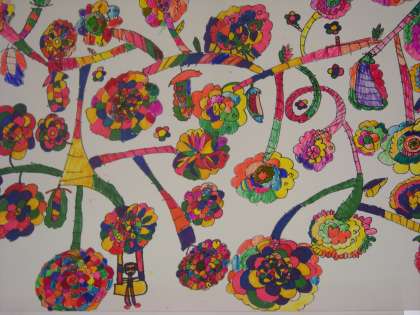 いろいろな色を使って楽しいお花を描きました。形や色を工夫して素敵な花が仕上がりました。