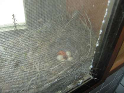 交流の森の男子トイレに、キセキレイの巣があってひながいました。おかあさんをいっしょうけんめいよんでいました。カラスに食べられないように、こんな所に巣を作っているそうです。