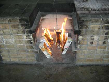 朝食にパックドッグを作りました。パンにキャベツとソーセジをはさんで、アルミホイルでつつみ、牛乳パックに入れて火をつけます。とてもおいしくてうれしかったです。