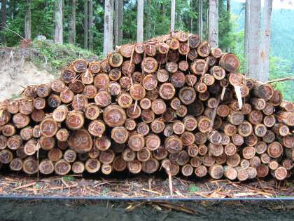 この数字なんだと思います?これは、木の太さを表す数字なんですよ。え?だいたいわかる?でもなんのために、と思いません?出荷するときに、太さで値段が全然ちがうのでわかるように打っているとのことです。