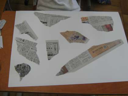 のりは,指先に少しずつとってうすくのばしていきます。ほとんど指も汚れず,べたべたにもなりません。