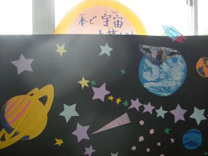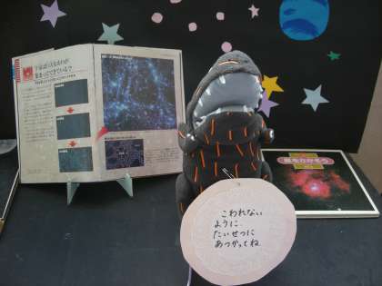 図書ボランティアの方の工夫により,図書室の入り口にも楽しい人形などを飾ってもらっています。