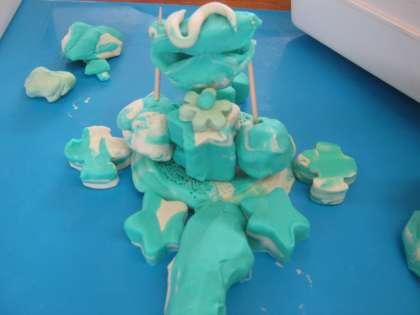 かたおしやかたぬきができそうな用具をつかって,ねん土で楽しい作品ができました。