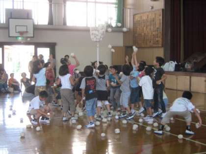真剣に玉を投げて,勝負を争いました。