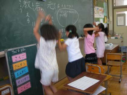 そこで,クラスでマルマルモリモリを踊ろうということになり,帰りの会の時に踊っています。今は,のりのりで踊っています。