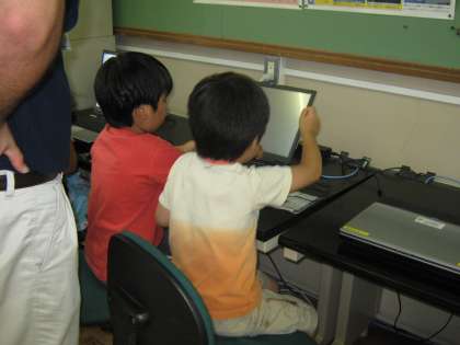 音がして,ウインドウズの画面が出てきたときには,歓声があがりました。