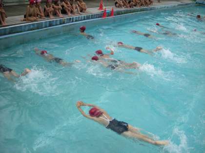 バタ足を練習しました。「10メートル以上泳ごう。」を合言葉でがんばっています。また,ふし浮きやけ伸びを頑張って練習しています。