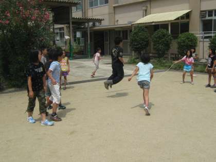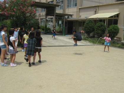 2組の全員遊びです。中間休みに大なわで8の字をしました。苦手な子も跳べて,みんな楽しく過ごせました。