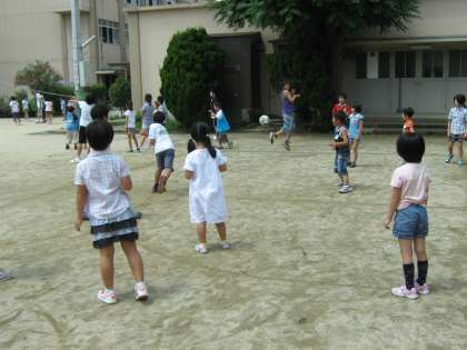 今日の中間休みに、たてわり遊びがありました。ぼくたちは、ドッヂボールをしました。とても暑かったけど、おもしろかったです。次は、おおなわです。