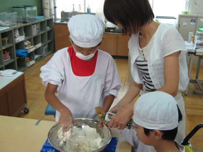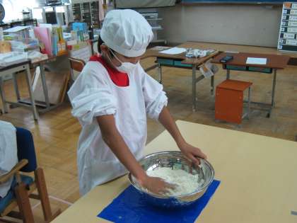 今日、ピザの生地を作りました。小麦粉にイースト菌を混ぜて、あたたかい所においてはっこうさせます。