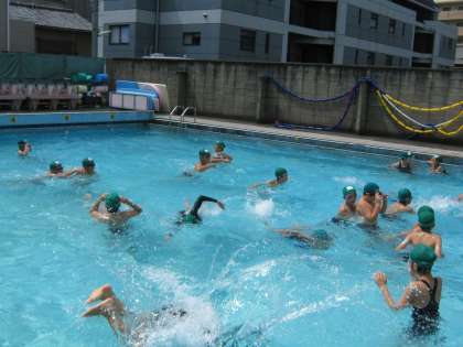 プールがとても気持ちいいです。水慣れで,みんなで楽しんでいます。