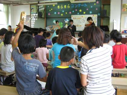最後に、参加した全員で合奏しました。よく知っている曲なので、みんなでとても盛り上がりました。コンサートは大成功でした。