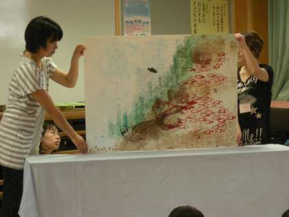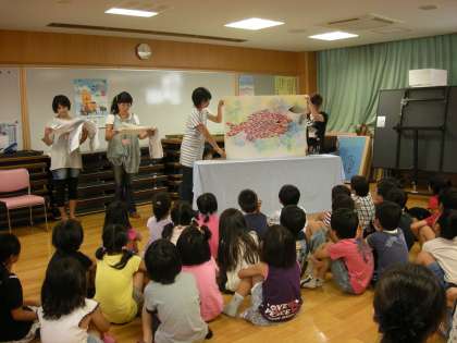 スイミーを大型紙芝居でお話してもらいました。海の中にいるような音楽も流してもらいながら見ました。