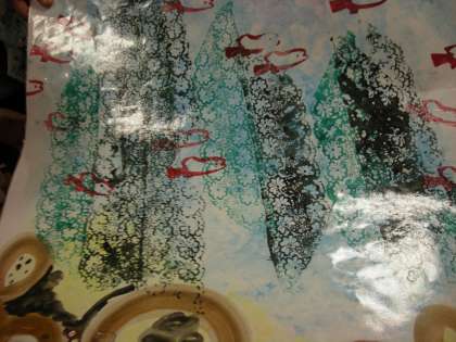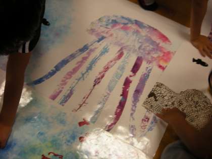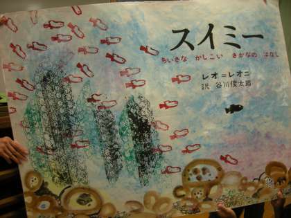 大型紙芝居を手にとって見ることが出来て大喜びでした。模造紙位の大きさでカバーもはってあり1枚1枚重さもありました。