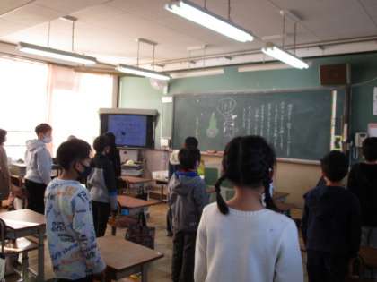 「新しい年を迎え,自分の健康と安全に気を付け,楽しく学びの多い学校生活にするために,今年,一年どんなことをがんばりますか?」という問いかけをしました。つまり,自分で目標を立てるということであり,目標の内容が大切だということです。また,目標を達成するためには一日一日の過ごし方が大切であるという話もしました。