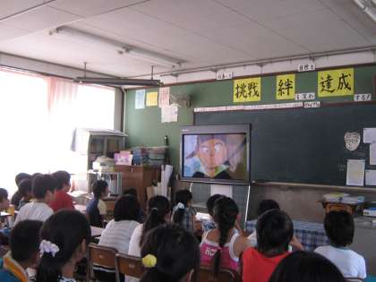 5年生は登校日でした。まずは,みんなで「はだしのげん」を見ました。