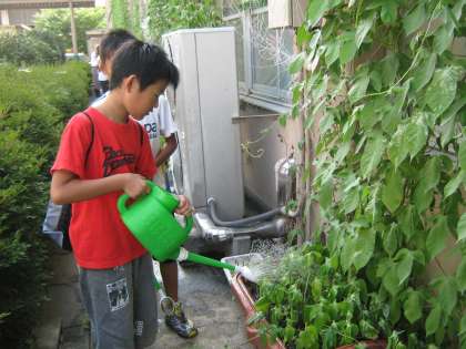 プールの帰りにみんなで水やりをしました!元気に育ってほしいです。