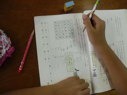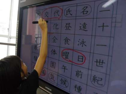 漢字のしりとりの学習をしました。まず,それぞれで考えてから,電子黒板上で答えを確認し合いました。