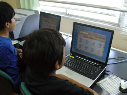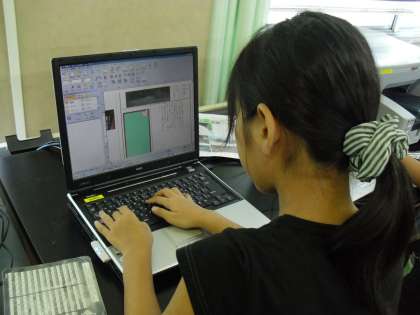 コンピュータを使って新聞作りをしています。