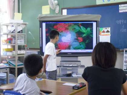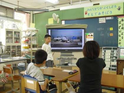 少しの間、旅行にいっていたので、たくさん現地の写真をとってきました。みんなの前で、楽しかった思いでを発表しました。