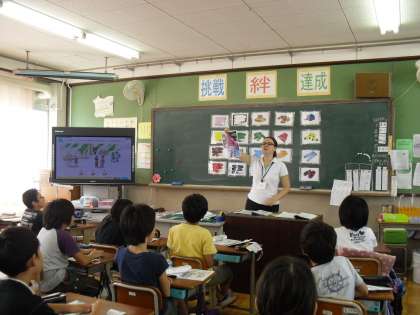 今回は,「いろいろな国の衣装を知ろう」の学習で,普段身につけている衣類の呼び方やそれぞれの国の衣装について教えてもらいました。