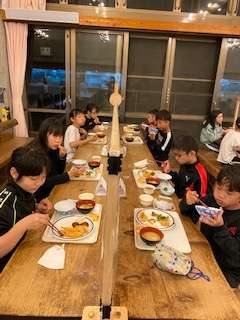 メニューはエビフライに餃子、切り干し大根、ポテトサラダ、煮魚、ハンバーグ、三度豆のおひたし、とごちそうです。