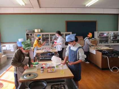 6年生では家庭科の学習で「朝食から健康な1日の生活を」の単元を学んでいます。健康に一日を過ごすためにどのような朝食をとるといいかと考えて,いろどり野菜いためを調理実習でつくりました。コロナ感染対策として少人数で調理し,自分の分は自分で調理しました。朝ご飯を食べる大切さを実感して実生活に生かしていってほしいと思います。