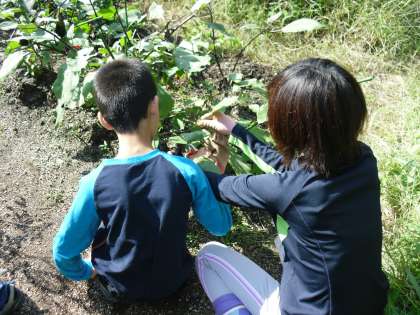 3組の畑のなすは、まだまだ実をつけています。今日もたくさん収穫しました。