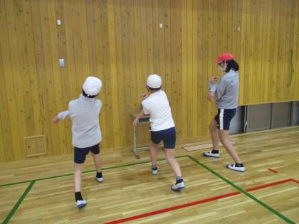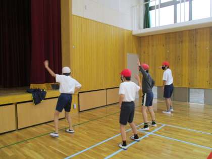 6年生は,体育科「リズムダンス」の学習をしています。リズムダンスの楽しさや喜びを味わい,リズムに乗って弾んだり踊ったり,友達と関わり合ったりして踊っていました。互いのよさを認め合い助け合って踊ったり,場の安全に気を配ったりすることができました。