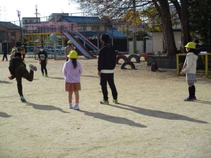 異年齢で遊ぶことで,高学年はリーダーとして行動しようとし,低学年は,高学年の姿を見て学ぼうとしているようです。そして何より,みんなで楽しんで遊んでいる姿があります。