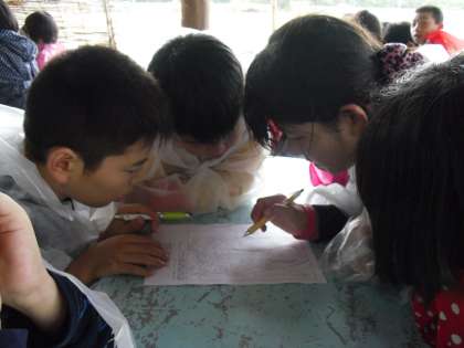 雨のため予定変更を余儀なくされました。午前中の磯観察に予定していた宮崎浜は濡れて足場が悪く,少し遠いですが,大野浜の砂浜に行きました。午後の浦山ラリーも山は滑りやすく危ないので,みさきの家内のオリエンテーリングに変更しました。地図をみてポイントを探し,そこでのクイズを解いて回っていきます。グループで協力し,決められた時間内にまわることをめざします。写真はスタートする前,どう回るか,グループで作戦会議中のものです。