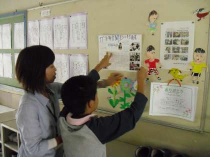 6年生の靴箱の上の掲示板に貼っていますので、ぜひ見て下さい。