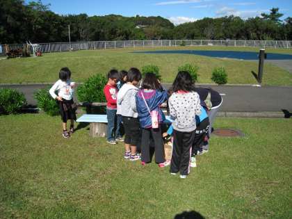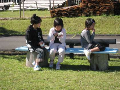 朝の集いの後,朝食をとり,バンガローの掃除をみんなでおこないました。「来た時よりも美しく」なりました。そして芝生ランドでアイスクリームを食べました。
