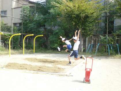 助走や踏み込みなどに気をつけながら,前よりももっと跳ぶぞ!という気持ちで頑張っています。